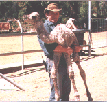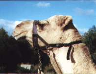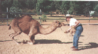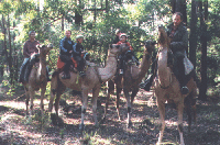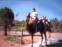 | | Sandra on Ofic leading Major, entering the main entrance of the Calamunnda Camel Farm | |  | | Riding with Chris on a trail around the farm | |  | | Wazim & Chris in the sand yard | |